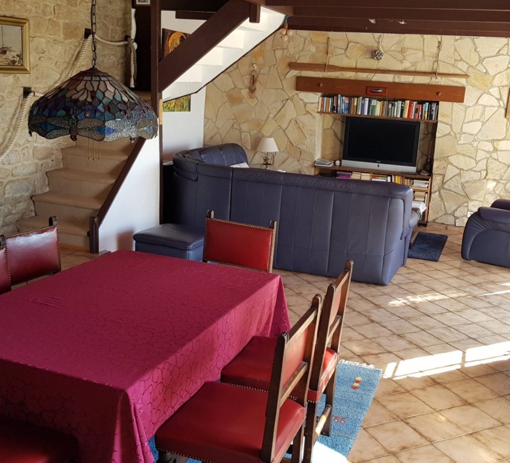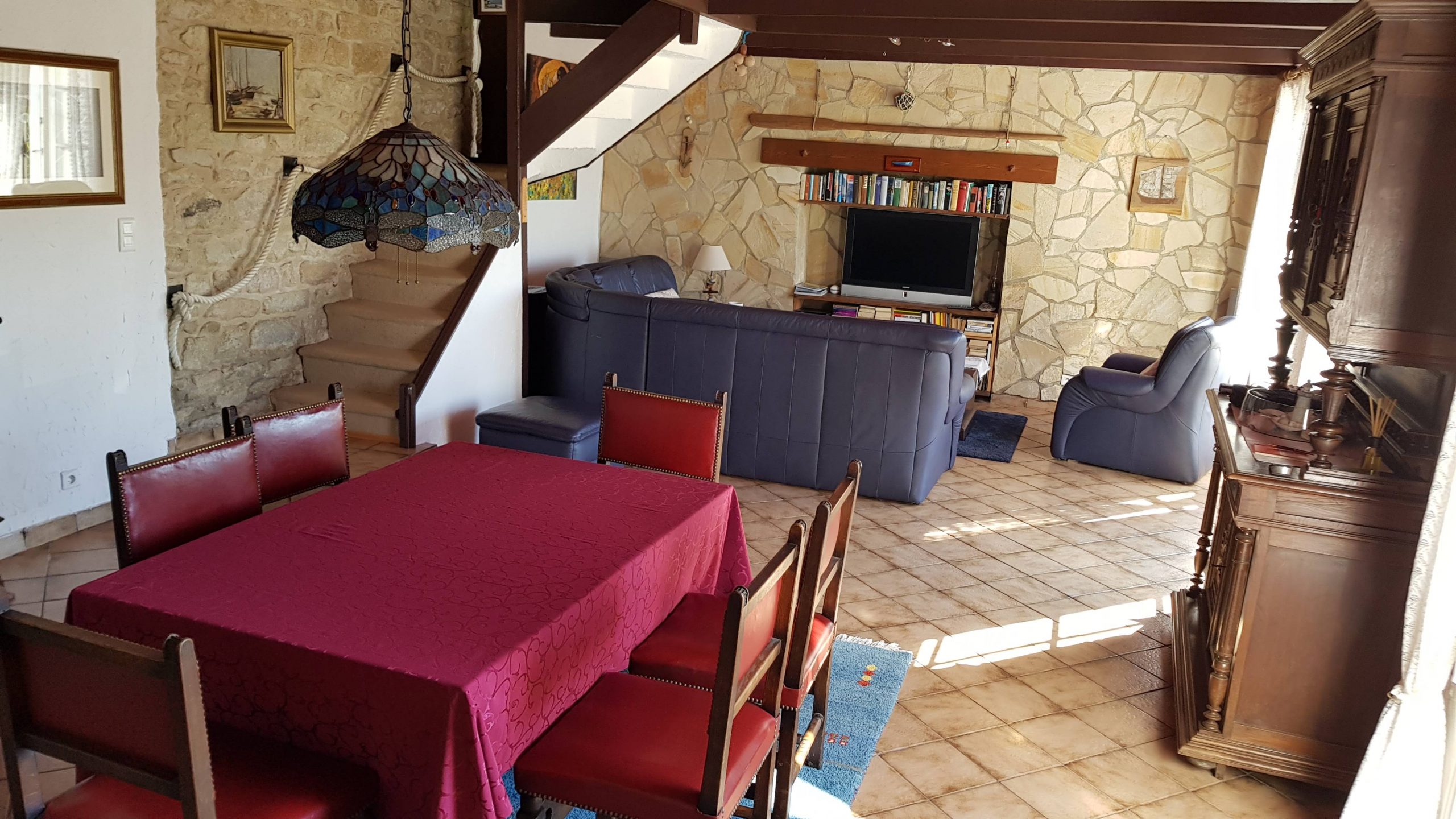Im Erdgeschoss erwartet Sie ein 60 m² großes, kombiniertes Wohn-Esszimmer, welches im maritimen Stil zum Teil mit Antiquitäten eingerichtet ist. Neben einem großen SAT-TV gibt es viele CD’s, Bücher und Spiele und freies W-LAN.