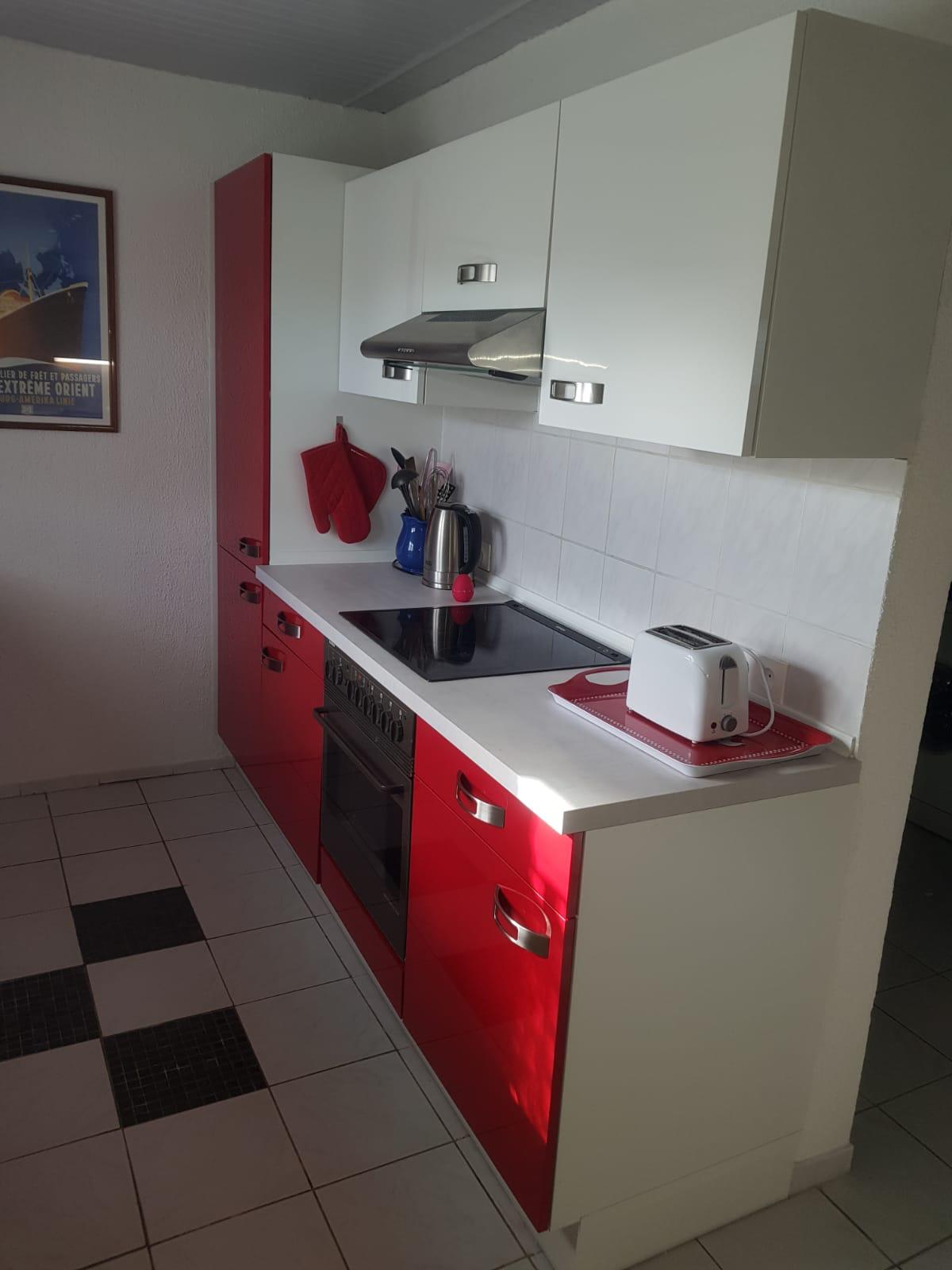 Im angrenzenden Anbau des Hauses befindet sich die komplett ausgestattete Küche, welche im Jahr 2021 erneuert wurde. Spülmaschine, Herd mit Cerankochfeld, Kühl-Gefrierkombination, Mikrowelle und vieles mehr sind vorhanden. Der Müll wird am Mittwoch abgeholt, Müllbeutel für gelbe und grüne Tonne bitte im Supermarkt selbst besorgen.